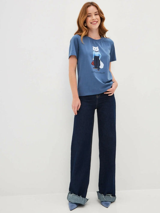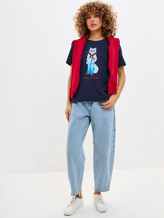 Blue t-shirt denim cat