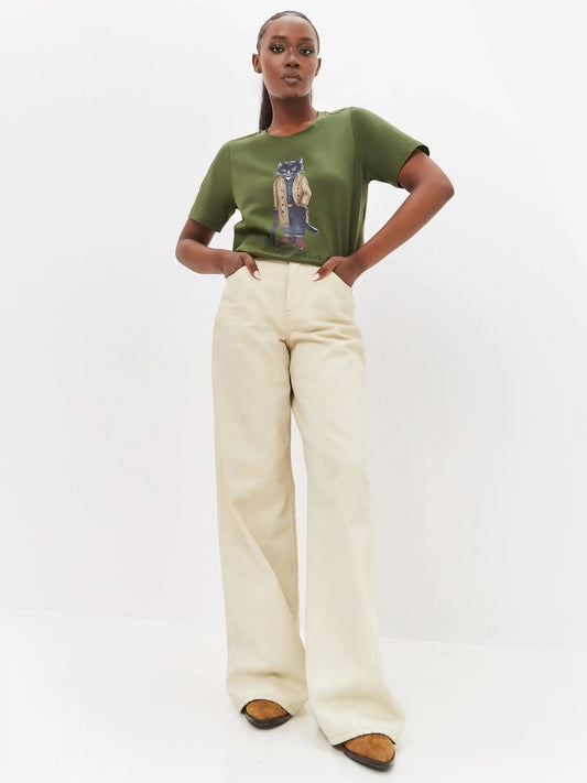 Olive t-shirt trench coat cat