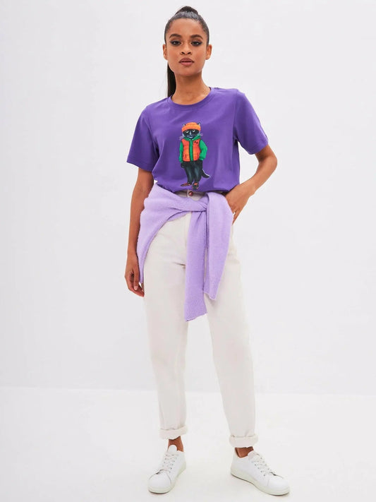 % SALEPurple t-shirt denim cat