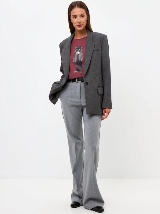 Blue t-shirt trench coat cat