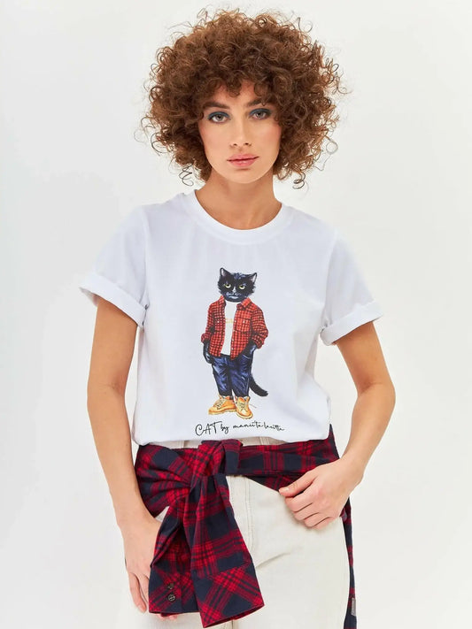 White t-shirt sport casual cat