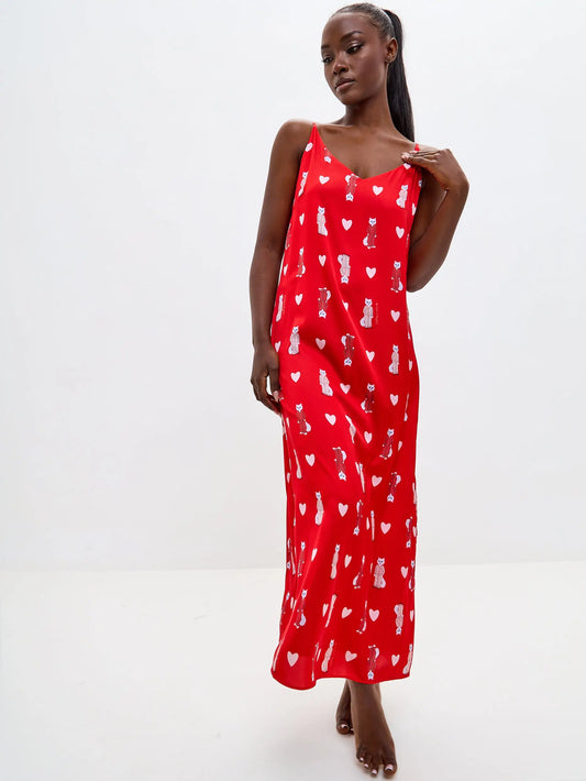 AusverkauftRoter Seidenoberteil Katze