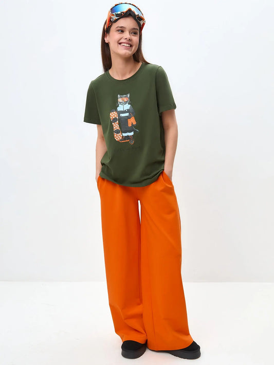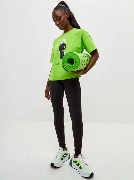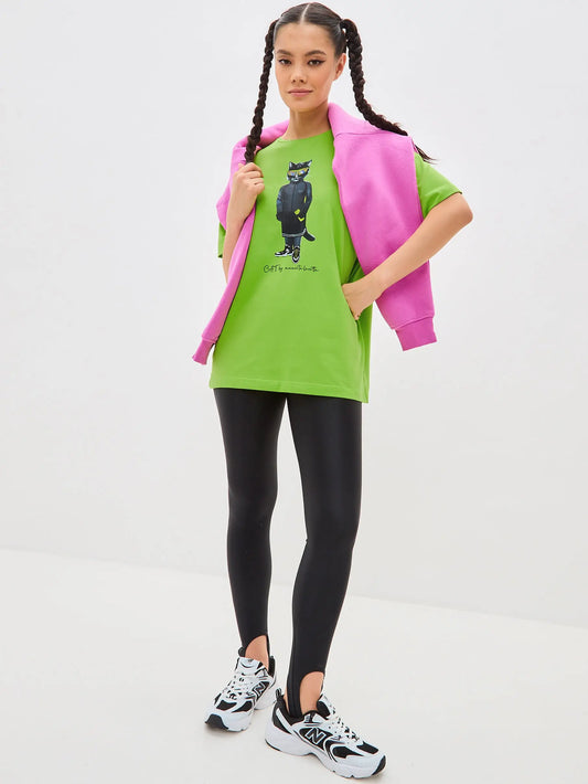 Grünes bedrucktes T-Shirt Sport-Katze