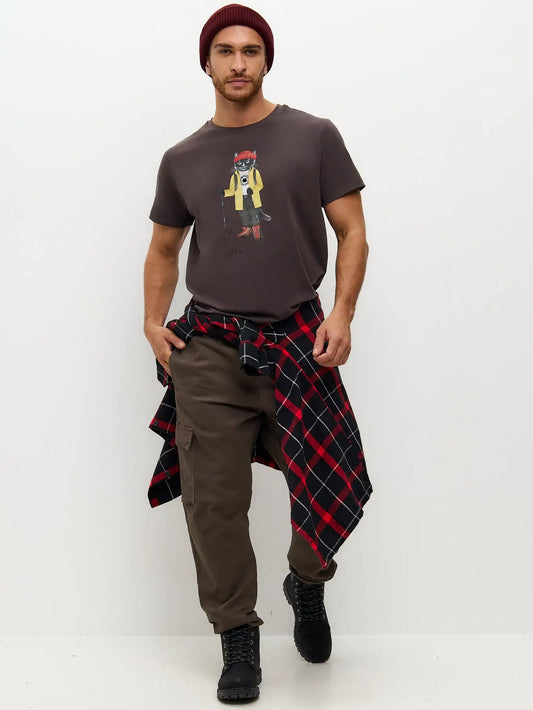 AusverkauftBraunes T-Shirt Reise Katze