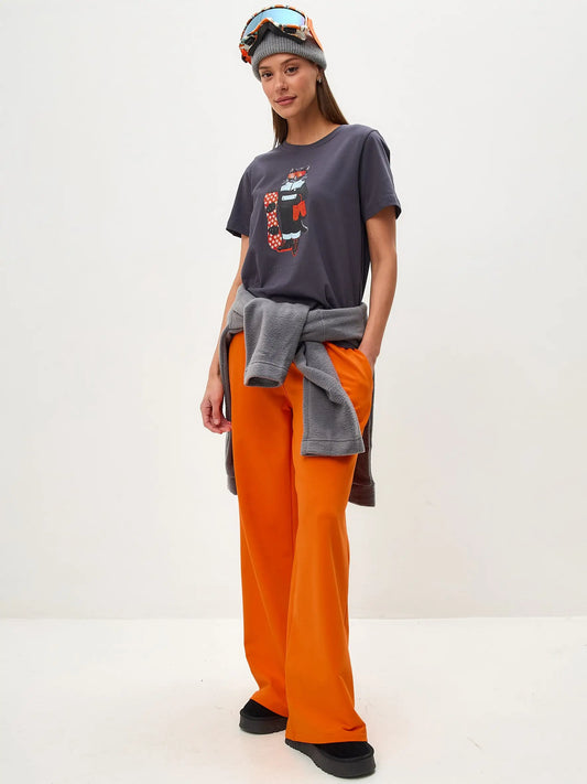 Orangenshirt Snowboard-Katze