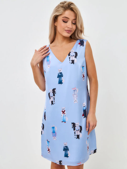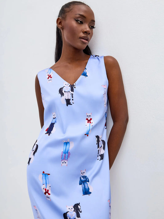 AgotadoGato superior de seda azul