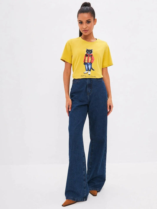 Camiseta amarilla deportiva casual de gato