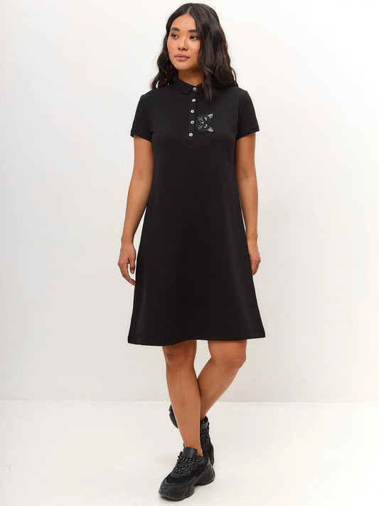 AgotadoVestido negro tipo polo con gato