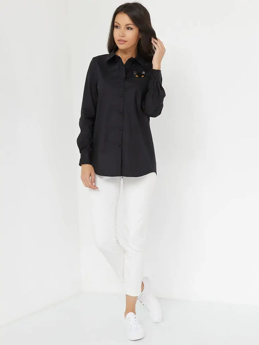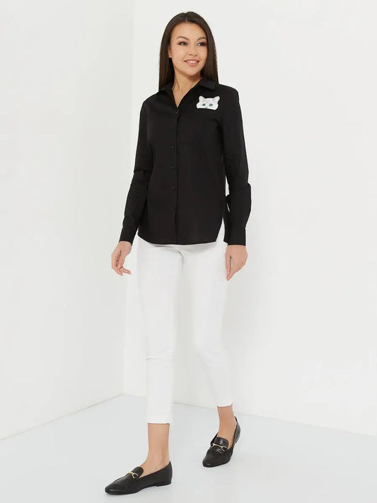 AgotadoCamisa de mujer negra con gato