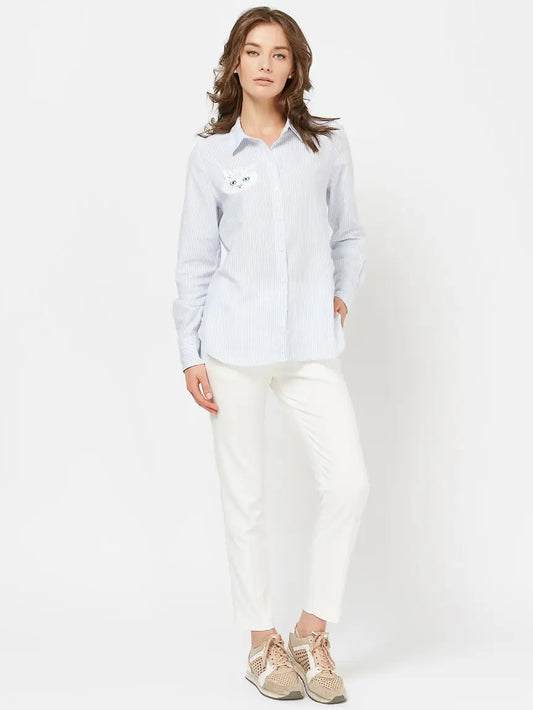 AgotadoCamisa azul para mujer con gato