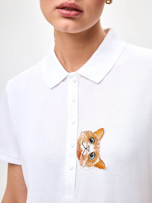 AgotadoCamisa polo blanca de gato